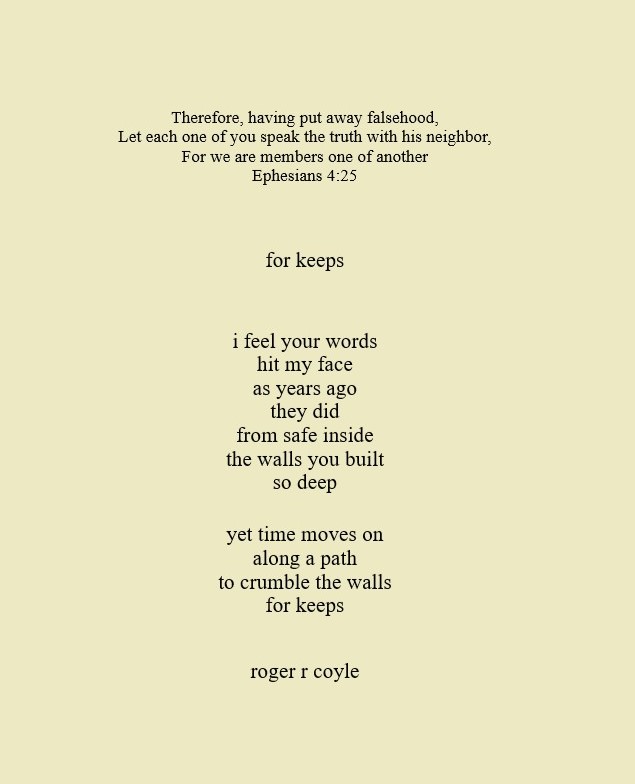 Some call me son, brother, godfather, cousin, uncle, writer, author, veteran, and friend. That may be true, but mostly I am me - a unique human being who has run the race of life through many different forests, down many roaring rivers and along some tangled paths. All in all it has been a good journey of growth and expansion of self. I am a lover of family, animals, food, laughs, poetry, books, compassionate people and chasing the light. My first journey into writing is Quiet Thoughts: Written Reflections. It is a book of poems and reflections - a small flicker of light into my life journey. I currently reside in Emmaus, PA and enjoy all that the Lehigh Valley has to offer. View all posts by rogerrcoyle
