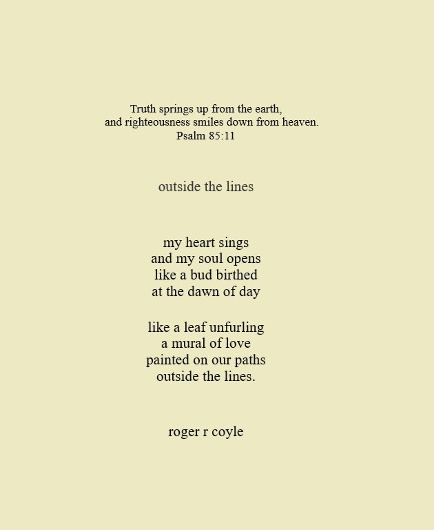 Some call me son, brother, godfather, cousin, uncle, writer, author, veteran, and friend. That may be true, but mostly I am me - a unique human being who has run the race of life through many different forests, down many roaring rivers and along some tangled paths. All in all it has been a good journey of growth and expansion of self. I am a lover of family, animals, food, laughs, poetry, books, compassionate people and chasing the light. My first journey into writing is Quiet Thoughts: Written Reflections. It is a book of poems and reflections - a small flicker of light into my life journey. I currently reside in Emmaus, PA and enjoy all that the Lehigh Valley has to offer. View all posts by rogerrcoyle