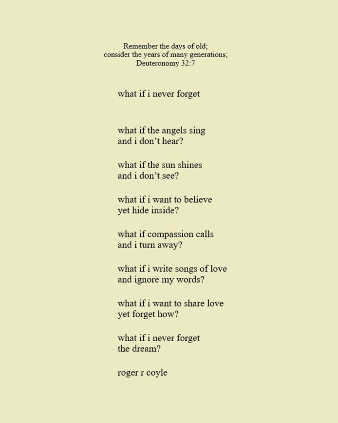 Some call me son, brother, godfather, cousin, uncle, writer, author, veteran, and friend. That may be true, but mostly I am me - a unique human being who has run the race of life through many different forests, down many roaring rivers and along some tangled paths. All in all it has been a good journey of growth and expansion of self. I am a lover of family, animals, food, laughs, poetry, books, compassionate people and chasing the light. My first journey into writing is Quiet Thoughts: Written Reflections. It is a book of poems and reflections - a small flicker of light into my life journey. I currently reside in Emmaus, PA and enjoy all that the Lehigh Valley has to offer. View all posts by rogerrcoyle