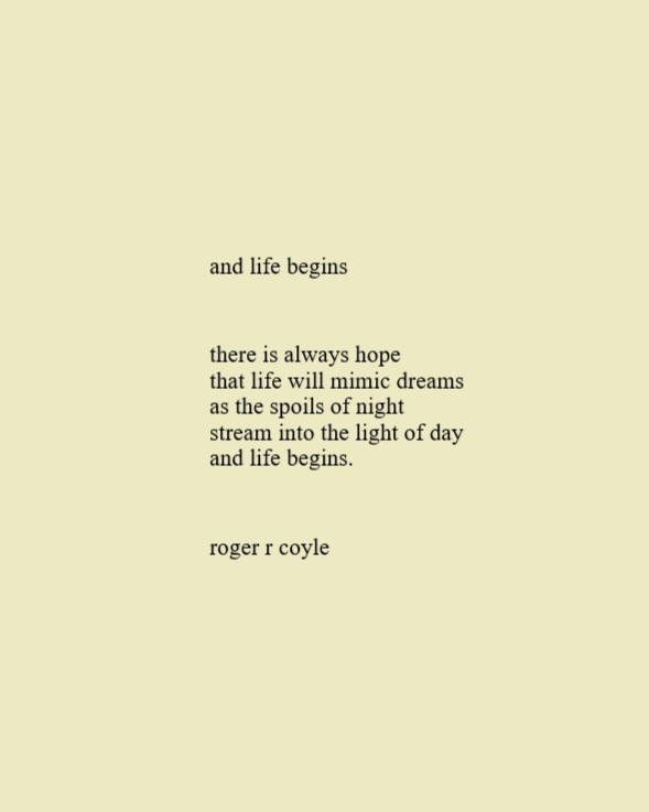 Some call me son, brother, godfather, cousin, uncle, writer, author, veteran, and friend. That may be true, but mostly I am me - a unique human being who has run the race of life through many different forests, down many roaring rivers and along some tangled paths. All in all it has been a good journey of growth and expansion of self. I am a lover of family, animals, food, laughs, poetry, books, compassionate people and chasing the light. My first journey into writing is Quiet Thoughts: Written Reflections. It is a book of poems and reflections - a small flicker of light into my life journey. I currently reside in Emmaus, PA and enjoy all that the Lehigh Valley has to offer. View all posts by rogerrcoyle