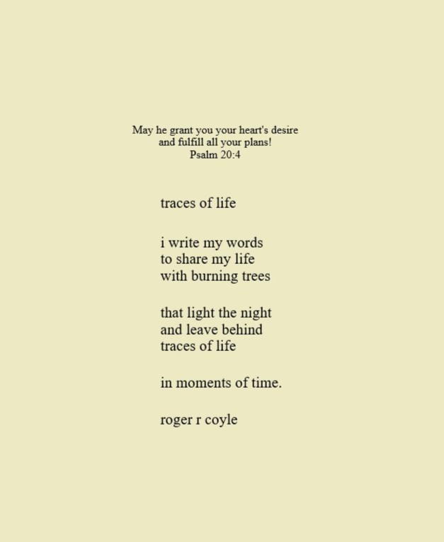 Some call me son, brother, godfather, cousin, uncle, writer, author, veteran, and friend. That may be true, but mostly I am me - a unique human being who has run the race of life through many different forests, down many roaring rivers and along some tangled paths. All in all it has been a good journey of growth and expansion of self. I am a lover of family, animals, food, laughs, poetry, books, compassionate people and chasing the light. My first journey into writing is Quiet Thoughts: Written Reflections. It is a book of poems and reflections - a small flicker of light into my life journey. I currently reside in Emmaus, PA and enjoy all that the Lehigh Valley has to offer. View all posts by rogerrcoyle