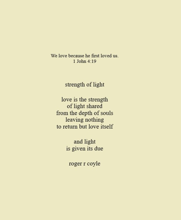 Some call me son, brother, godfather, cousin, uncle, writer, author, veteran, and friend. That may be true, but mostly I am me - a unique human being who has run the race of life through many different forests, down many roaring rivers and along some tangled paths. All in all it has been a good journey of growth and expansion of self. I am a lover of family, animals, food, laughs, poetry, books, compassionate people and chasing the light. My first journey into writing is Quiet Thoughts: Written Reflections. It is a book of poems and reflections - a small flicker of light into my life journey. I currently reside in Emmaus, PA and enjoy all that the Lehigh Valley has to offer. View all posts by rogerrcoyle