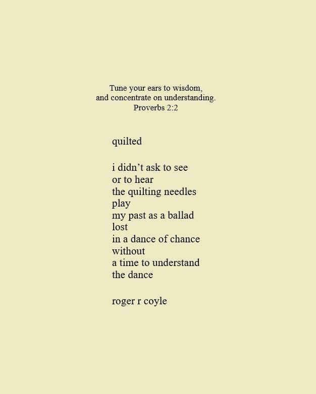 Some call me son, brother, godfather, cousin, uncle, writer, author, veteran, and friend. That may be true, but mostly I am me - a unique human being who has run the race of life through many different forests, down many roaring rivers and along some tangled paths. All in all it has been a good journey of growth and expansion of self. I am a lover of family, animals, food, laughs, poetry, books, compassionate people and chasing the light. My first journey into writing is Quiet Thoughts: Written Reflections. It is a book of poems and reflections - a small flicker of light into my life journey. I currently reside in Emmaus, PA and enjoy all that the Lehigh Valley has to offer. View all posts by rogerrcoyle