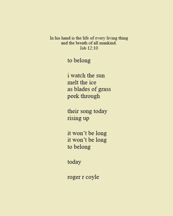 Some call me son, brother, godfather, cousin, uncle, writer, author, veteran, and friend. That may be true, but mostly I am me - a unique human being who has run the race of life through many different forests, down many roaring rivers and along some tangled paths. All in all it has been a good journey of growth and expansion of self. I am a lover of family, animals, food, laughs, poetry, books, compassionate people and chasing the light. My first journey into writing is Quiet Thoughts: Written Reflections. It is a book of poems and reflections - a small flicker of light into my life journey. I currently reside in Emmaus, PA and enjoy all that the Lehigh Valley has to offer. View all posts by rogerrcoyle
