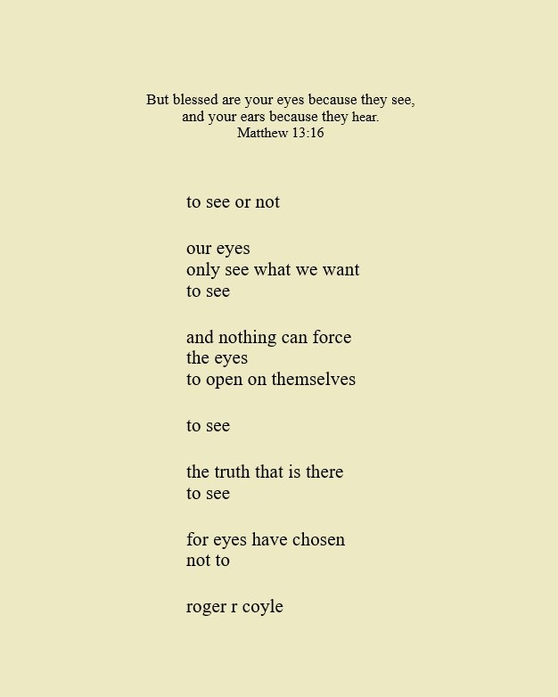 Some call me son, brother, godfather, cousin, uncle, writer, author, veteran, and friend. That may be true, but mostly I am me - a unique human being who has run the race of life through many different forests, down many roaring rivers and along some tangled paths. All in all it has been a good journey of growth and expansion of self. I am a lover of family, animals, food, laughs, poetry, books, compassionate people and chasing the light. My first journey into writing is Quiet Thoughts: Written Reflections. It is a book of poems and reflections - a small flicker of light into my life journey. I currently reside in Emmaus, PA and enjoy all that the Lehigh Valley has to offer. View all posts by rogerrcoyle