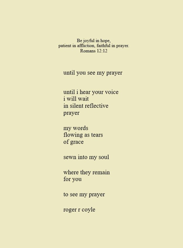 Some call me son, brother, godfather, cousin, uncle, writer, author, veteran, and friend. That may be true, but mostly I am me - a unique human being who has run the race of life through many different forests, down many roaring rivers and along some tangled paths. All in all it has been a good journey of growth and expansion of self. I am a lover of family, animals, food, laughs, poetry, books, compassionate people and chasing the light. My first journey into writing is Quiet Thoughts: Written Reflections. It is a book of poems and reflections - a small flicker of light into my life journey. I currently reside in Emmaus, PA and enjoy all that the Lehigh Valley has to offer. View all posts by rogerrcoyle
