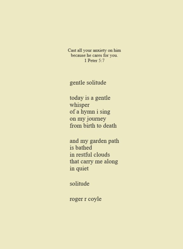 Some call me son, brother, godfather, cousin, uncle, writer, author, veteran, and friend. That may be true, but mostly I am me - a unique human being who has run the race of life through many different forests, down many roaring rivers and along some tangled paths. All in all it has been a good journey of growth and expansion of self. I am a lover of family, animals, food, laughs, poetry, books, compassionate people and chasing the light. My first journey into writing is Quiet Thoughts: Written Reflections. It is a book of poems and reflections - a small flicker of light into my life journey. I currently reside in Emmaus, PA and enjoy all that the Lehigh Valley has to offer. View all posts by rogerrcoyle