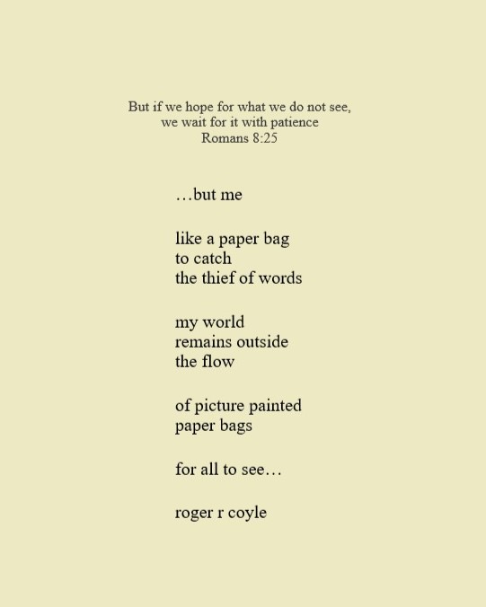 Some call me son, brother, godfather, cousin, uncle, writer, author, veteran, and friend. That may be true, but mostly I am me - a unique human being who has run the race of life through many different forests, down many roaring rivers and along some tangled paths. All in all it has been a good journey of growth and expansion of self. I am a lover of family, animals, food, laughs, poetry, books, compassionate people and chasing the light. My first journey into writing is Quiet Thoughts: Written Reflections. It is a book of poems and reflections - a small flicker of light into my life journey. I currently reside in Emmaus, PA and enjoy all that the Lehigh Valley has to offer. View all posts by rogerrcoyle