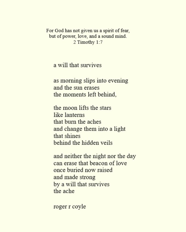 Some call me son, brother, godfather, cousin, uncle, writer, author, veteran, and friend. That may be true, but mostly I am me - a unique human being who has run the race of life through many different forests, down many roaring rivers and along some tangled paths. All in all it has been a good journey of growth and expansion of self. I am a lover of family, animals, food, laughs, poetry, books, compassionate people and chasing the light. My first journey into writing is Quiet Thoughts: Written Reflections. It is a book of poems and reflections - a small flicker of light into my life journey. I currently reside in Emmaus, PA and enjoy all that the Lehigh Valley has to offer. View all posts by rogerrcoyle