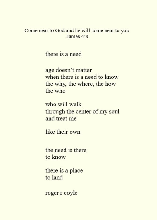 Some call me son, brother, godfather, cousin, uncle, writer, author, veteran, and friend. That may be true, but mostly I am me - a unique human being who has run the race of life through many different forests, down many roaring rivers and along some tangled paths. All in all it has been a good journey of growth and expansion of self. I am a lover of family, animals, food, laughs, poetry, books, compassionate people and chasing the light. My first journey into writing is Quiet Thoughts: Written Reflections. It is a book of poems and reflections - a small flicker of light into my life journey. I currently reside in Emmaus, PA and enjoy all that the Lehigh Valley has to offer. View all posts by rogerrcoyle