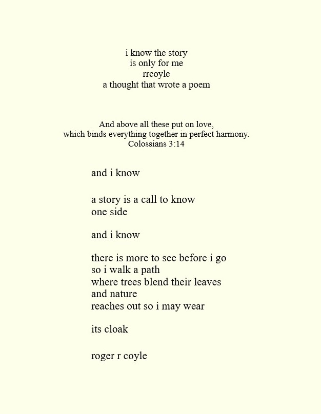 Some call me son, brother, godfather, cousin, uncle, writer, author, veteran, and friend. That may be true, but mostly I am me - a unique human being who has run the race of life through many different forests, down many roaring rivers and along some tangled paths. All in all it has been a good journey of growth and expansion of self. I am a lover of family, animals, food, laughs, poetry, books, compassionate people and chasing the light. My first journey into writing is Quiet Thoughts: Written Reflections. It is a book of poems and reflections - a small flicker of light into my life journey. I currently reside in Emmaus, PA and enjoy all that the Lehigh Valley has to offer. View all posts by rogerrcoyle