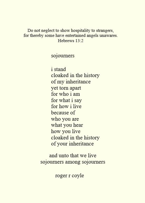 Some call me son, brother, godfather, cousin, uncle, writer, author, veteran, and friend. That may be true, but mostly I am me - a unique human being who has run the race of life through many different forests, down many roaring rivers and along some tangled paths. All in all it has been a good journey of growth and expansion of self. I am a lover of family, animals, food, laughs, poetry, books, compassionate people and chasing the light. My first journey into writing is Quiet Thoughts: Written Reflections. It is a book of poems and reflections - a small flicker of light into my life journey. I currently reside in Emmaus, PA and enjoy all that the Lehigh Valley has to offer. View all posts by rogerrcoyle