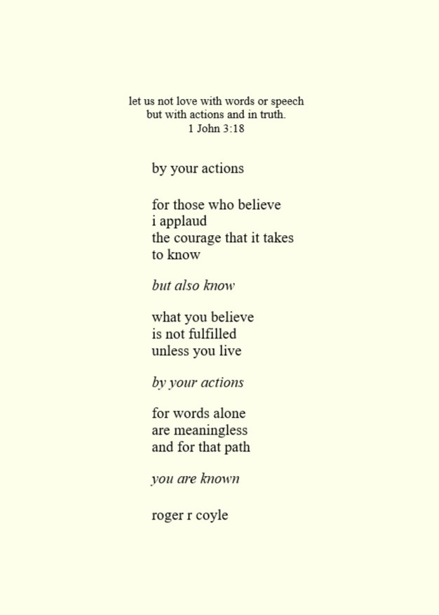 Some call me son, brother, godfather, cousin, uncle, writer, author, veteran, and friend. That may be true, but mostly I am me - a unique human being who has run the race of life through many different forests, down many roaring rivers and along some tangled paths. All in all it has been a good journey of growth and expansion of self. I am a lover of family, animals, food, laughs, poetry, books, compassionate people and chasing the light. My first journey into writing is Quiet Thoughts: Written Reflections. It is a book of poems and reflections - a small flicker of light into my life journey. I currently reside in Emmaus, PA and enjoy all that the Lehigh Valley has to offer. View all posts by rogerrcoyle